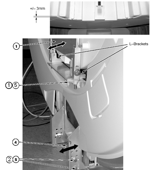 - Move the support lower bracket until the ±3.0 mm bridge-to-front-bridge-cover alignment has been achieved.