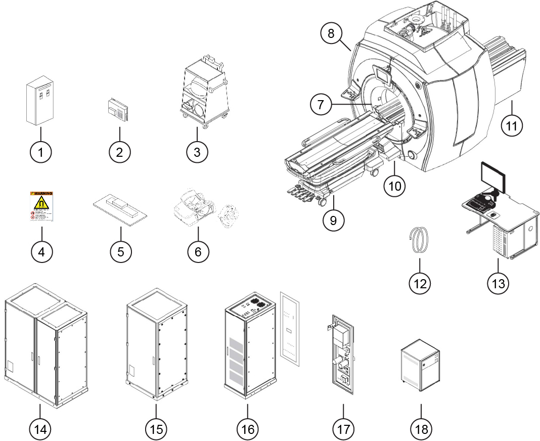 Cables may be listed as individual FRUs or as part of a cable collector. Collectors may be LONG or SHORT. SHORT cables are used when equipment room cabinets are located near the rear of the magnet room. LONG cables are used when equipment room cabinets are located near the front of the magnet room.