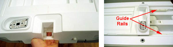Reinstall the left and right strap rails by sliding from the middle and back sections. Ensure there is no gap between the strap rails and the cradle front section.