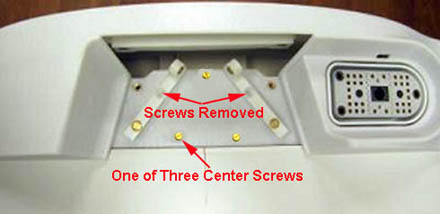 Remove the three center screws. Lift and remove the rear section of the cover from the cradle.