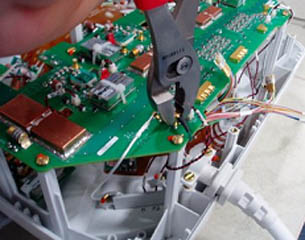 - Remove the RF connectors labeled J8, J2 and J11 by pulling each out in a horizontal direction.