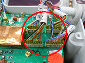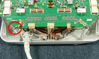 - Remove the RF connectors labeled J33, J34, J35, and J36 by pulling straight up from the board.
