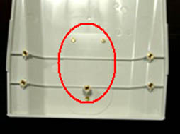 Reinstall the latch catch and the seventh screw on the anterior cover. The post of the latch catch fits into the anterior section of the coil and can be positioned in one direction.
