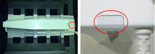 Remove the upper two screws on the plastic pieces and rotate them as shown.