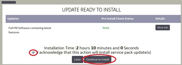 Note: Refer to the MR Service Pack Software Matrix (DOC1667089), available from the online documentation library and make sure the necessary service pack media (if any) is available. Do not start the software load until this media is available.