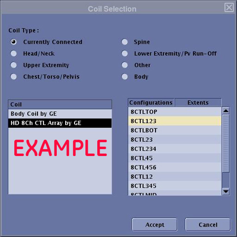 Verify that the system has correctly detected the coil by checking Currently Connected in the GUI to select coils in Rx as shown in Figure 1.
