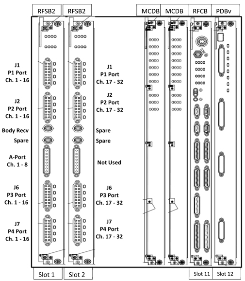 The 8 HR brain coil uses the legacy A-port connector. On a system that does not have a reroute box, this connector connects directly to the RFSB in slot 13.