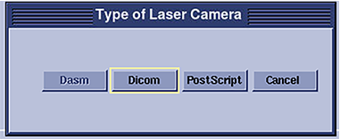 4. In the Type of Laser Camera dialog window, click Dicom.