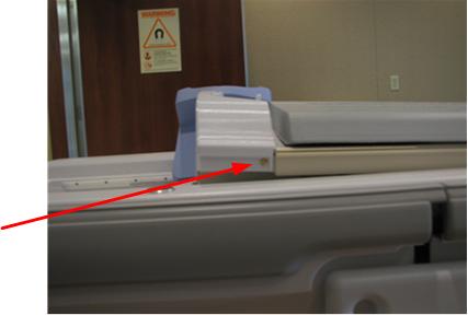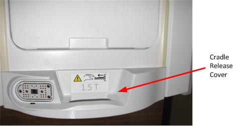 - Release the cradle and slide the cradle off the table approximately 6 inches (100 mm) to expose the cradle front.