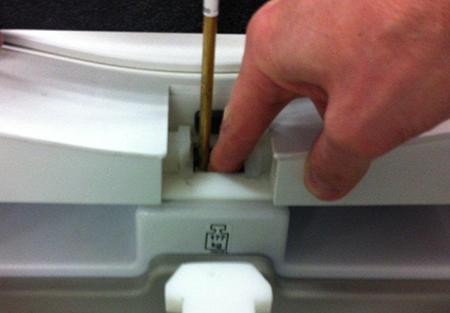 7. Adjust the housing's position to minimize the distance between the latch and the latch housing. Cycle (press) the latch several times, to make sure the latch never sticks in the down position.