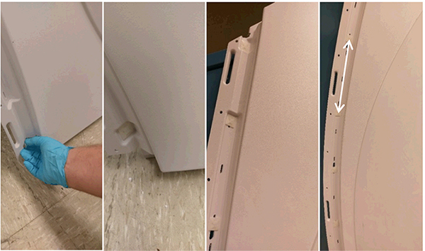 Both left and right covers have the vertical light strips attached. Disconnect the power cord from each light before moving or replacing. See Vertical Light Strip Replacement.
