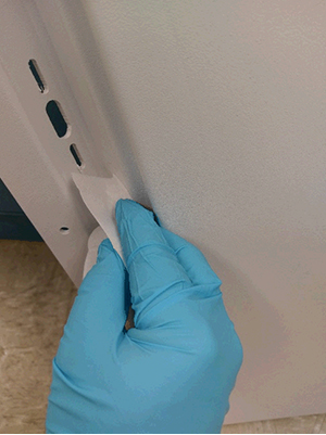 CAUTION: Nitrile gloves must be worn when using alcohol wipes and glue.