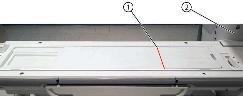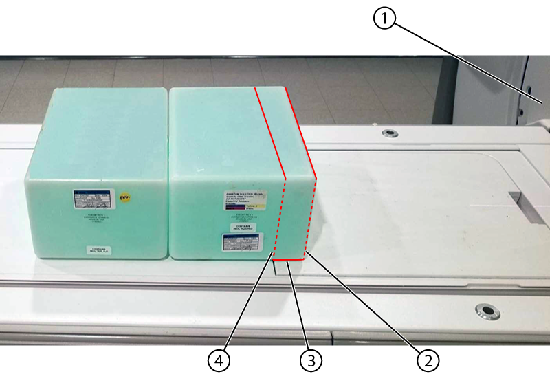 Important: Make sure that the front end of the first phantom (closest to the bore) overlaps the bottom edge of the flat filler panel 50mm. A slight misalignment of the phantoms and landmark may cause a false negative result from MCQA.