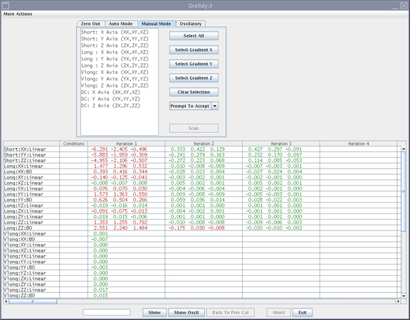 NOTE: After you complete the tool in Auto or Manual mode the tool will automatically enable the Oscillatory Mode. Oscillatory mode needs to be run ONLY when there is any failure seen with any of the Long compensation terms in either Auto Mode or Manual Mode. Oscillatory Mode will not help to improve the system eddy current compensation, when it is run without having any of the Long mode failure from the Auto or Manual mode, rather it could cause some harm to the system eddy current compensation.