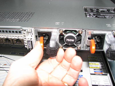 6. Move the orange locking lever to the center of the supply and then pull the power supply out of the ICN chassis.