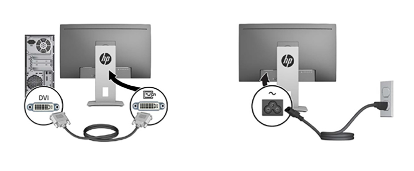 Figure 1. Video and Power Cable Connections - HP Monitor