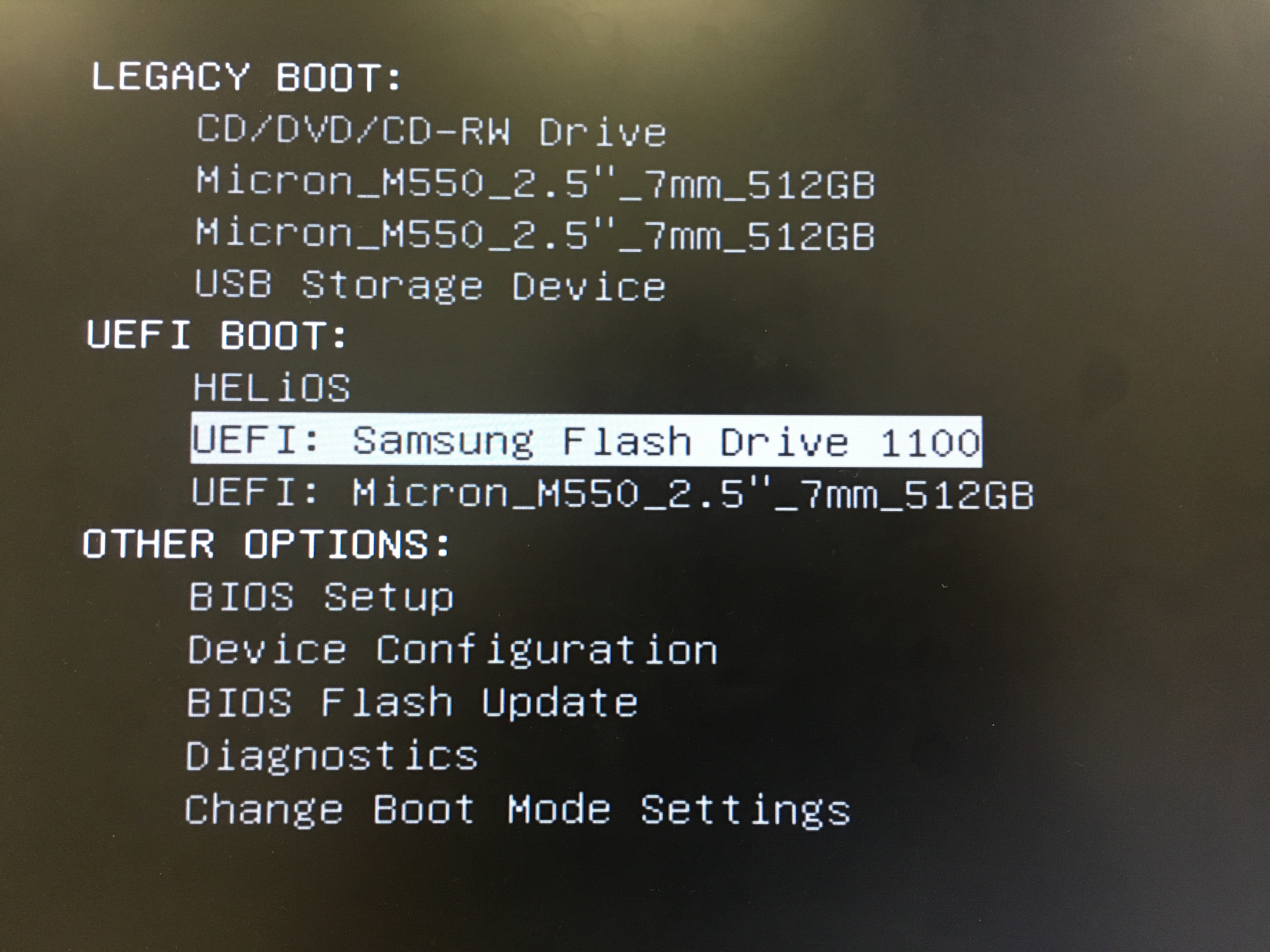 3. Use the up and down arrows on the keyboard to select the Samsung Flash Drive 1100.