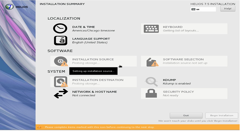 9. Guided Install language selection and System Configuration should now be completed. See System and hardware configuration. Click Configure on each tab of Guided Install where configuration is updated.
