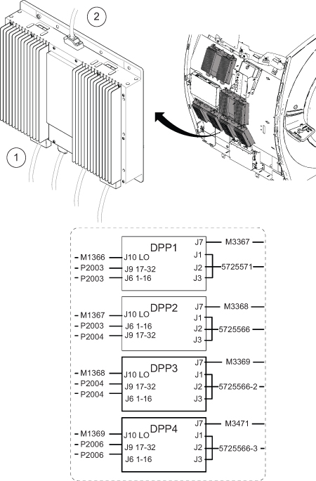 Disconnect the following cables from the top of the DPP: J9, J6, and J7.