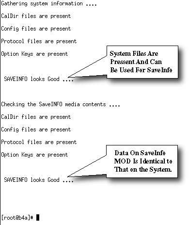 The checkINFO program is used to verify contents of the SaveInfo data on the system disk and on the actual SaveInfo DVD. The program first checks the system disk for the proper files and proper file size.