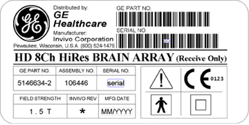 Figure 1. 1.5T HD 8-Channel High Res Brain Array Coil Serial Label