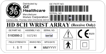 Figure 1. 1.5T HD 8-Channel Wrist Array Coil Label