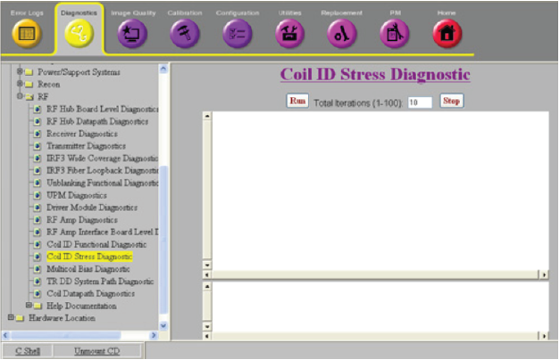 This diagnostic tests the communication path for retrieving and displaying coil ID information. It is intended to be used to troubleshoot intermittent coil detection or ID problems.