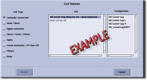Figure 1. Currently Connected Coils Window in the Scan Screen
