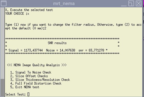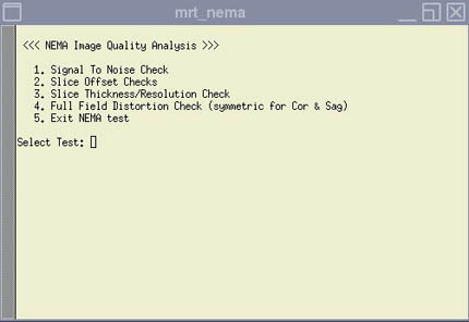 - In the mrt_nema window, type 1 for Signal To Noise Check and press Enter.