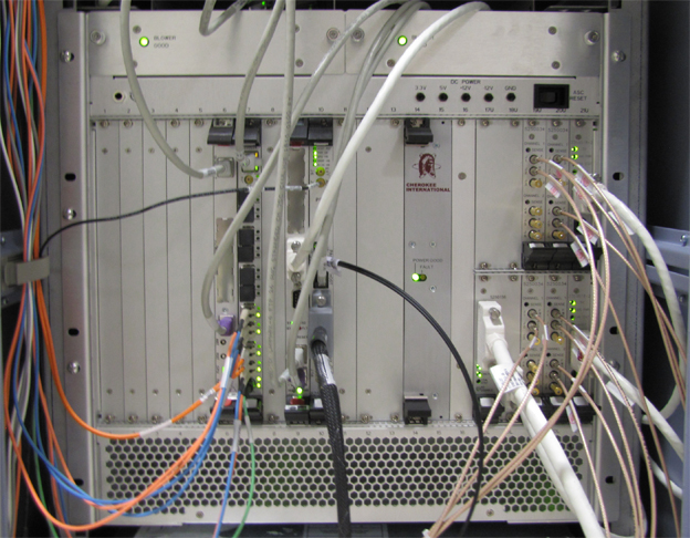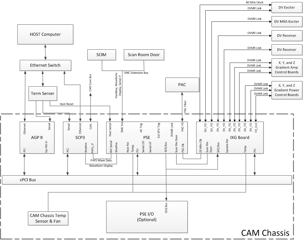 Multi-Generational Data acquisition chassis – consists of components that generate the timed control signals necessary to control the MR imaging system under the direction of the imaging sequence (pulse sequence). These control signals drive the gradient output and RF output, and gate the RF receive window. Details of the circuit board functionality is described below.