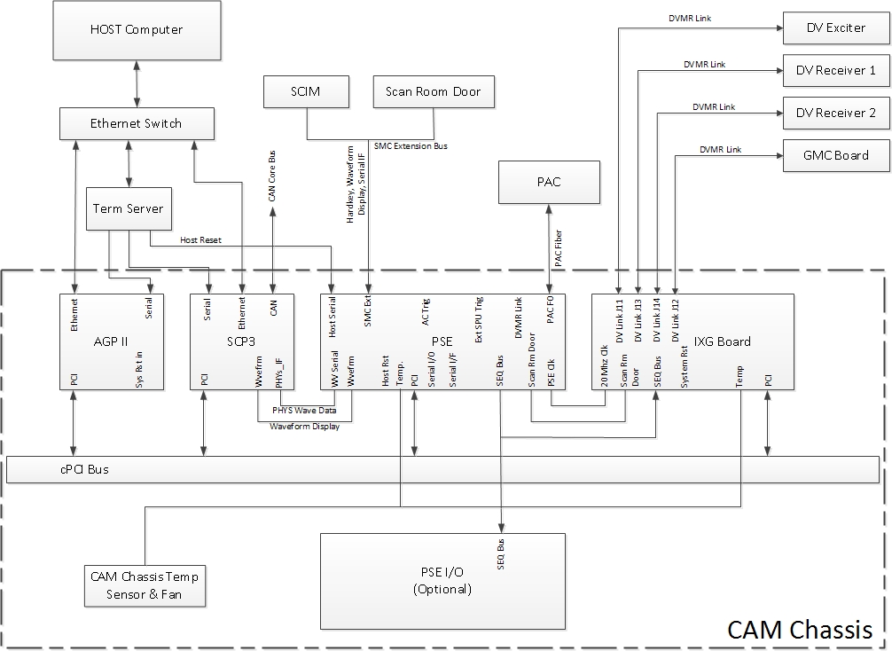 Amplifier Support Controller chassis – provides the narrow and broadband RF amplifier interface (control signals) and RF power monitoring. Boards in the ASC chassis remain on the CAN network. There is no direct bus communication between ASC and MGD components.