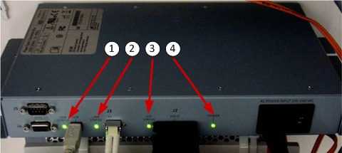 | 1 | USB Status LED | This LED has 2 states: green and dark. Green indicates proper USB communication between IRD module and IRD monitor over dual fiber optic link. This LED does not indicate the condition of USB communication between the IRD monitor and trackball assemblies, or the host PC and IRD module. |