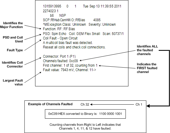 Use the multicoil bias tool to confirm faulted channels. (Troubleshooting > Diagnostics > Hardware Location > Magnet Room)