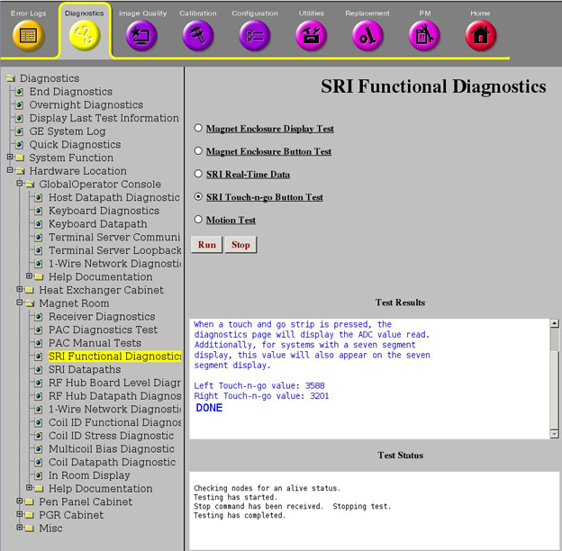 The TnG Diagnostic is found on the SRI functional diagnostic menu.