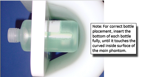 note:For correct bottle placement, fully insert the bottom of each phantom bottle until it touches the curved inside surface of the main phantom. (See Figure 4.)