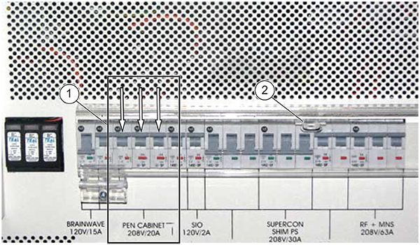 | Electrical | x | Power, Gradient, RF Cabinet (PGR) PDU (power distribution unit) Circuit Breaker Panel | 208 VAC | |