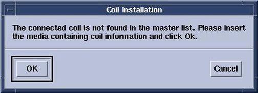 - If the system is unable to configure the coil and no media is available that contains the coil data, click the Cancel button.