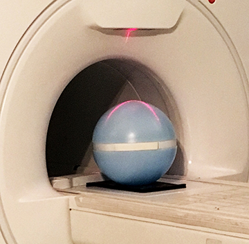 - Set up the 31 cm blue sphere phantom in the head position on the universal phantom pad.
