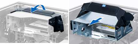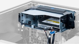 - Install the new DVD drive in reverse sequence, and connect the power and data cables.note: When restoring the DVD Drive cage, lift the release latch and slide the pins on the both side of cage along the slot till they reach to the end. Then, close the release latch.