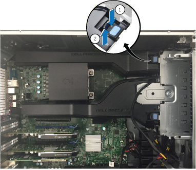 - Install the new SSD in reverse sequence.There are no jumpers required to configure the disk drives on the Dell T5810. Connect the power cables to the SATA connectors labeled on the board as HDD1 and HDD0.