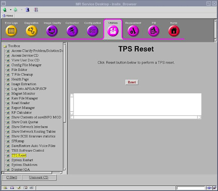 - Under the Utilities tab, click TPS Reset in the left navigation pane.