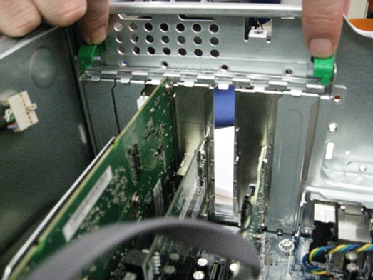 - Install the replacement graphics card into the open slot, and restore the locking bar.