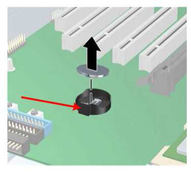 - Remove the old CMOS battery. Release the CMOS battery from its