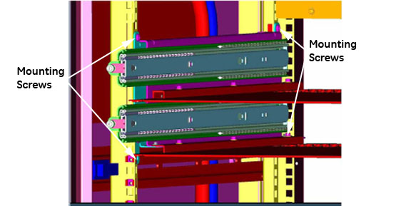 - Attach the slide rails for the ICN 4170 module to the mounting