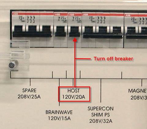 Set the host circuit breaker to the DOWN position to disconnect power.