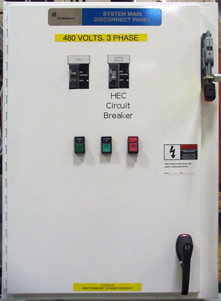 - Turn off all five circuit breakers on the HEC power box. The circuit breakers are located above the variable speed drive displays.