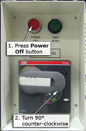 - Locate and turn off the PGR PDU main breaker on the MDP that feeds the PGR cabinet.
