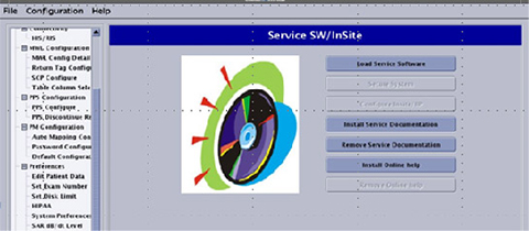Restricted service software is only available for GE use; Advanced service software is only available to sites with a valid Advanced Service Package Limited License. GE Healthcare Restricted service software permits configuration of InSite Interactive.