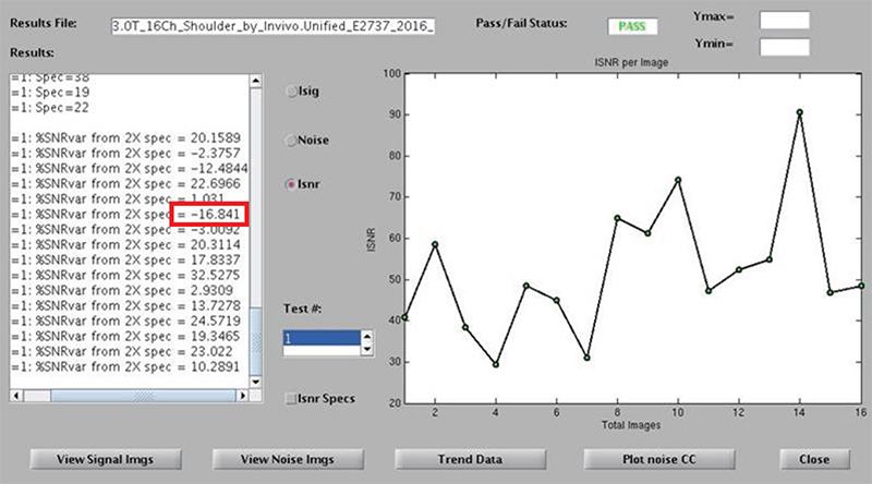 Figure 3. MCQA Viewer Showing %SNR Variance