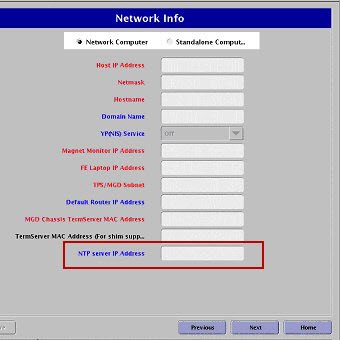 The Network Time Protocol (NTP) is a protocol for synchronizing the clocks of computer systems over packet-switched, variable-latency data networks. In order to use the NTP for synchronizing the system clock, a system within the hospital enterprise must be configured to provide the NTP service. This system will then provide time clock updates to systems configured to use the NTP time synchronization capability. Not all enterprises support this capability. In order to configure the MR scanner to use the NTP capability to keep its clock synchronized with the other systems within the hospital, you will need the IP address of the NTP server.